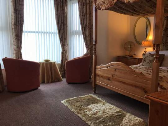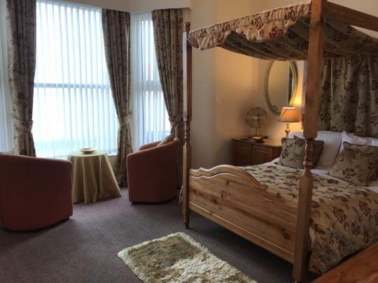 Celebrating something special or simply like a bit of added luxury? Then look no further than our Superior Four Poster Seaview Non-Smoking room. This extra large room has an unrivalled view of the sea and promenade. Guests can sit in the large bay window and watch the waves rolling in and the sun set over the promenade. Located on the first floor (one flight up) this is a spacious room with a huge television, not to mention the dreamy traditional four-poster bed with a Romantica mattress, heritage topper, freshly laundered cotton bedding, plump pillows and rich embroidered canopies.